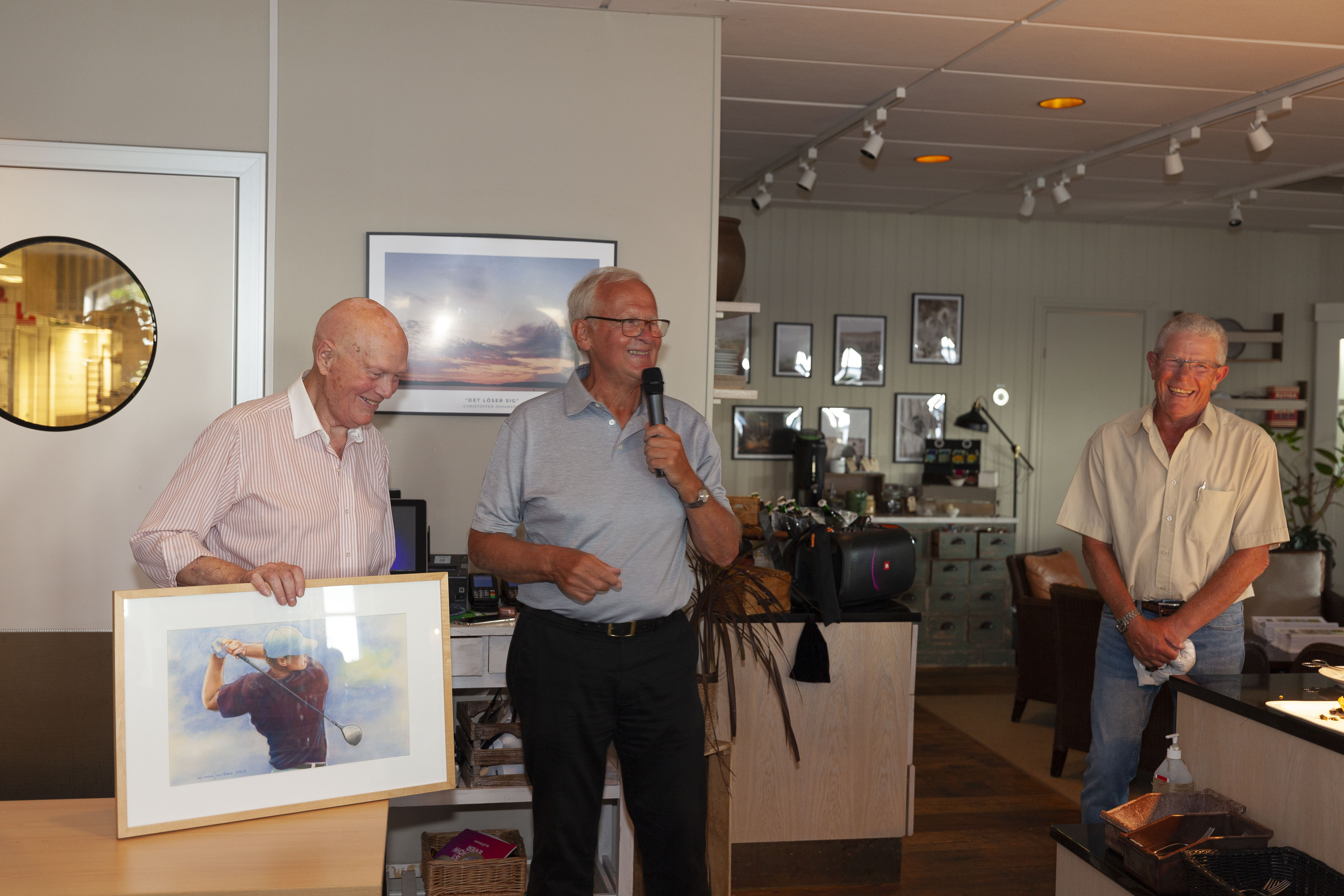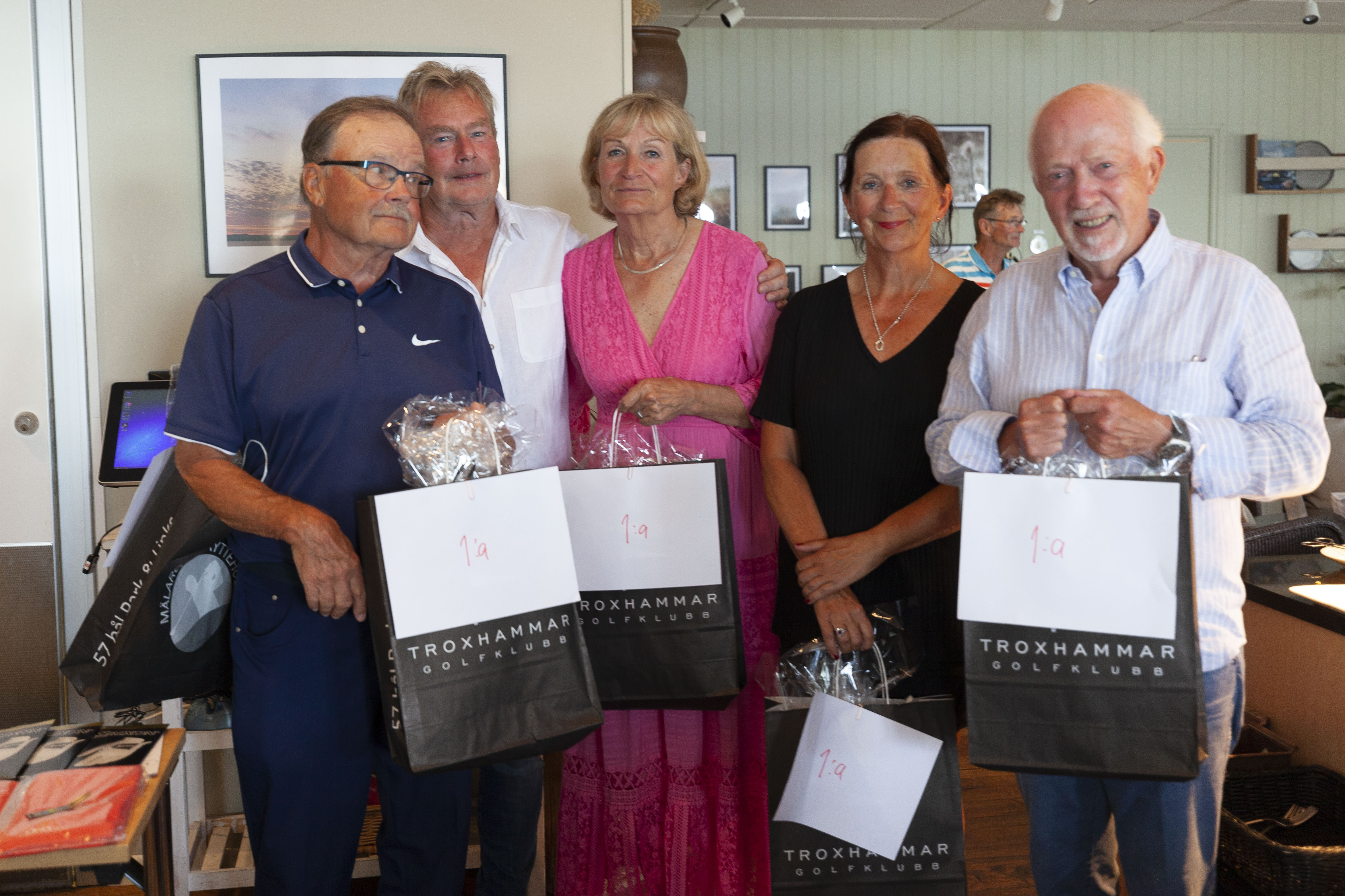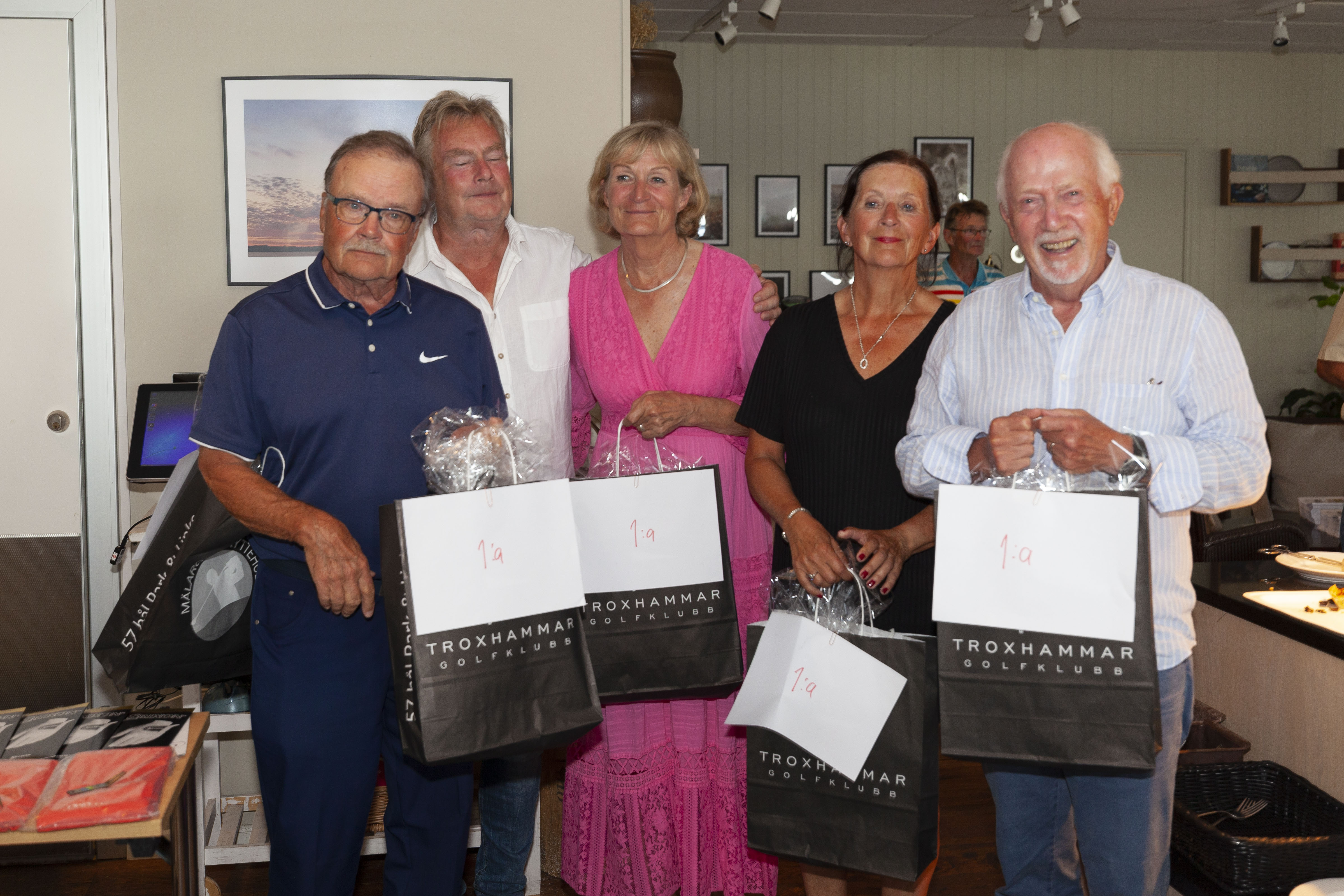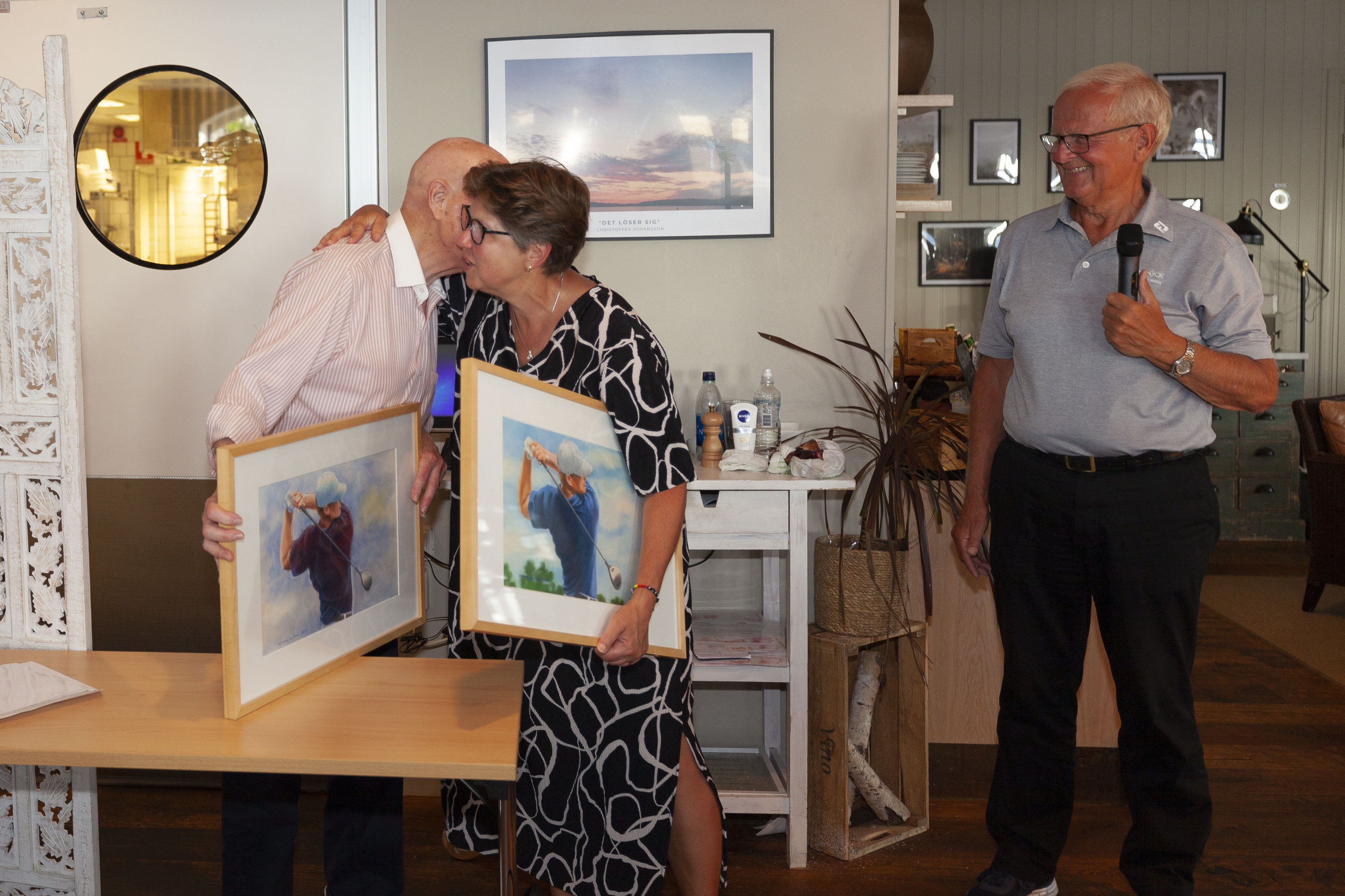 Jubileumskommittén hade fått ihop ett fint prisbord så att prisutdelningen kunde avslutas med både ”Lucky Draw” och ”Lucky Lucky Draw”. Det var med andra ord många nöjda festdeltagare som senare på kvällen gick hem med fina priser efter en rolig dag på golfbanan och en härlig kväll på Skyttegården och allt tillsammans med golfvänner från egna klubben.