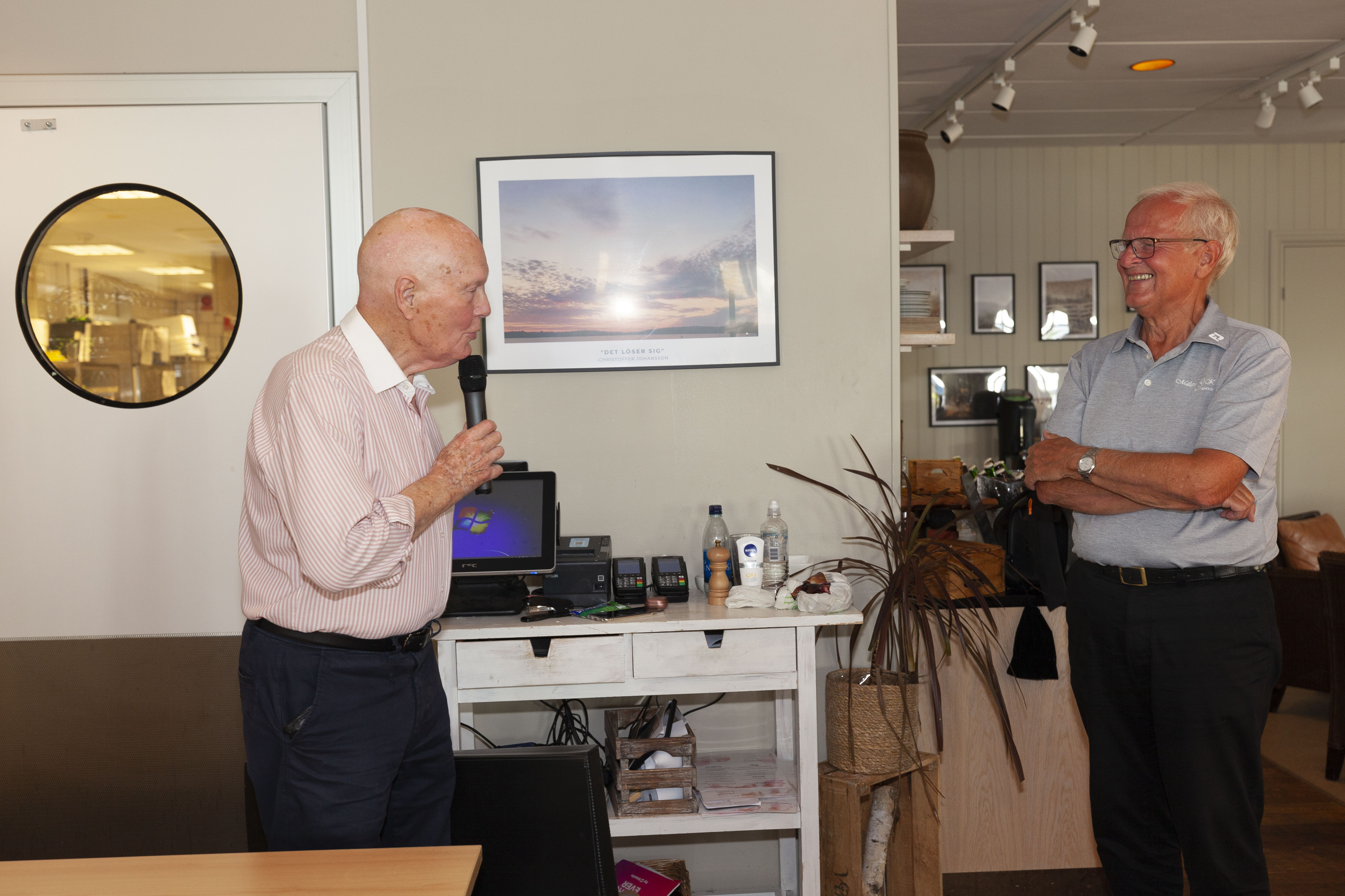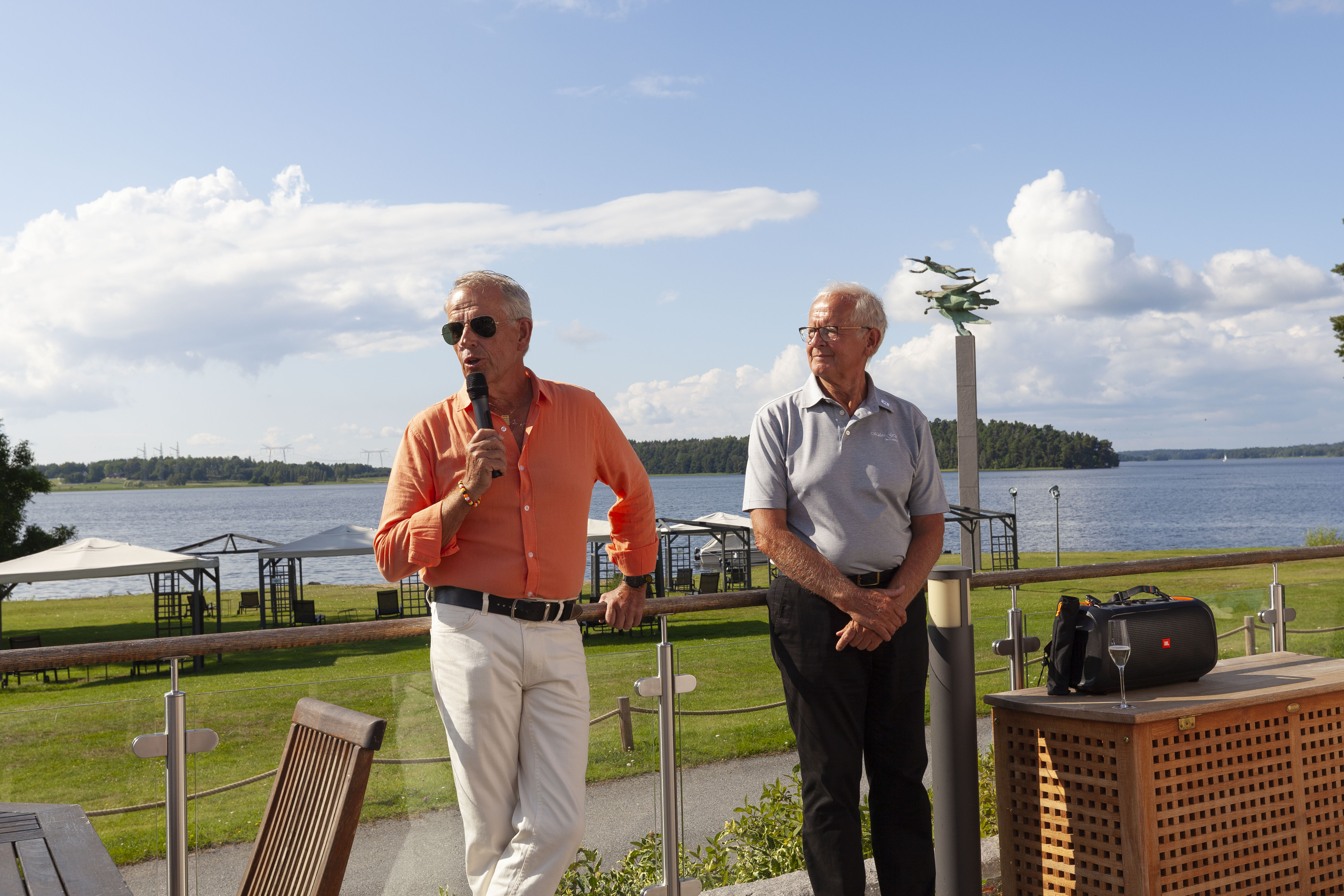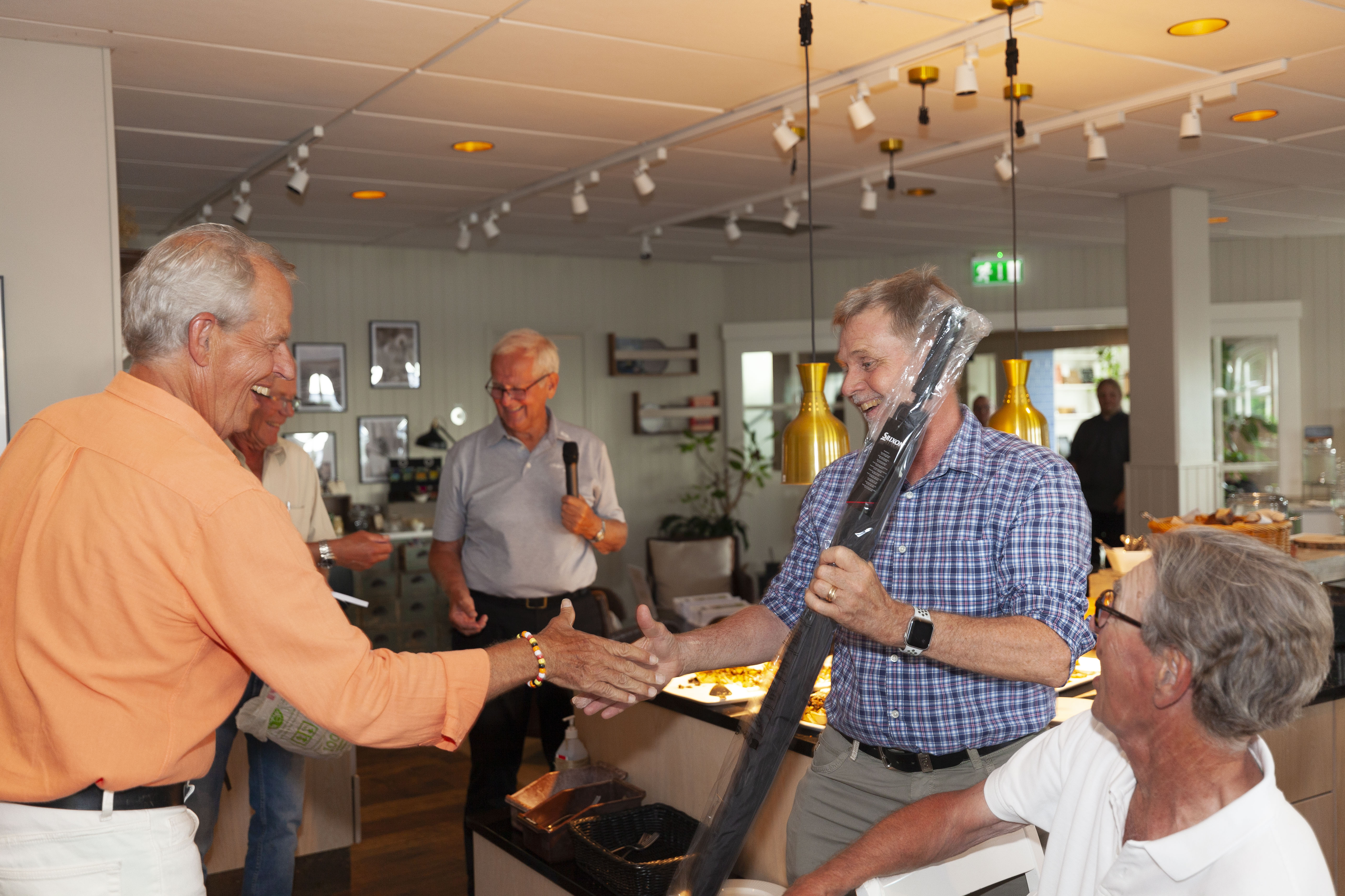 Efter avslutat spel var det mingel vid klubbhuset. Fler medlemmar och gäster anslöt och bland gästerna var vår förste pro Jan-Ivar Johansson, klubbmärkets skapare Ingemar Jacobson och vår förste kanslist Britten Björklund.