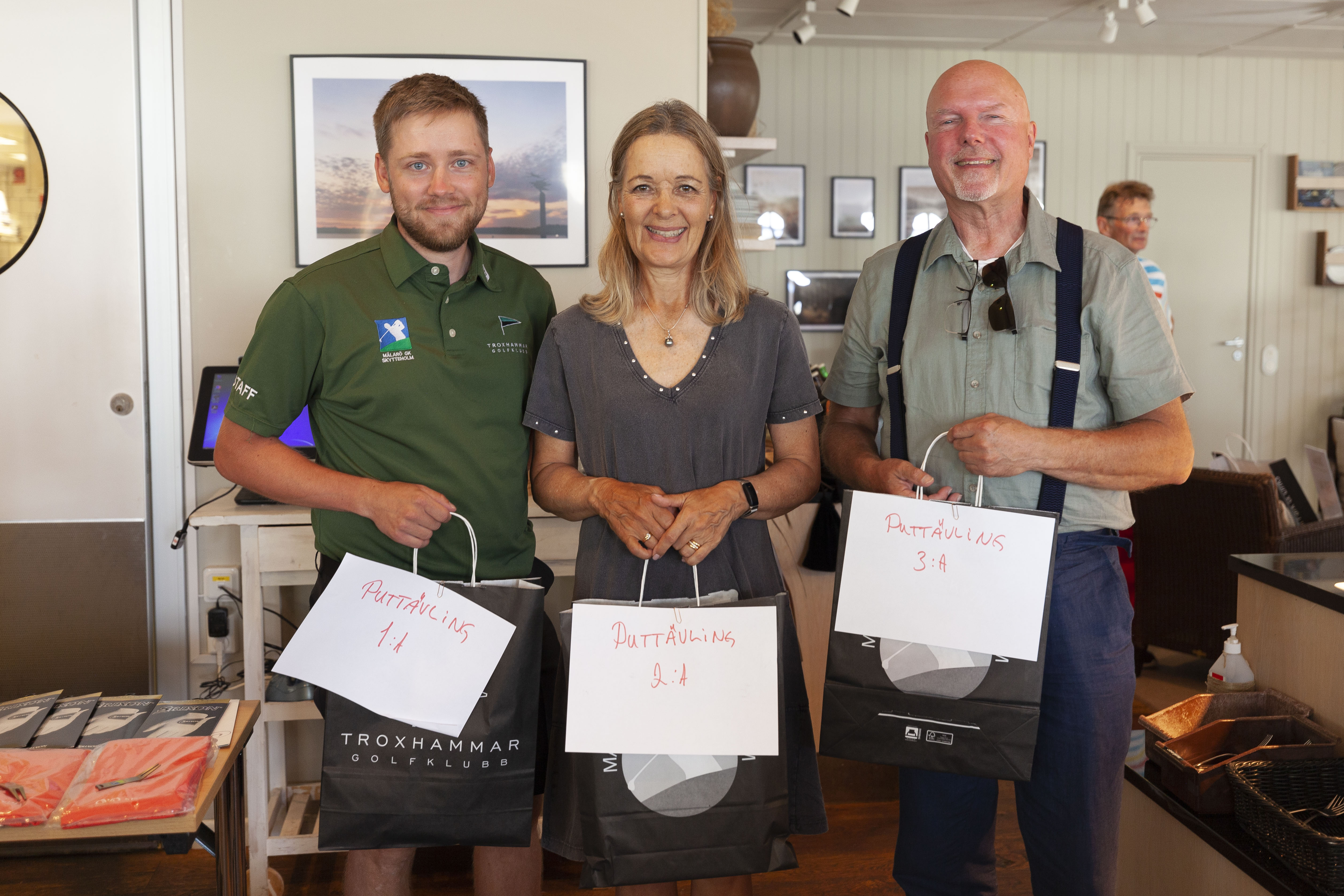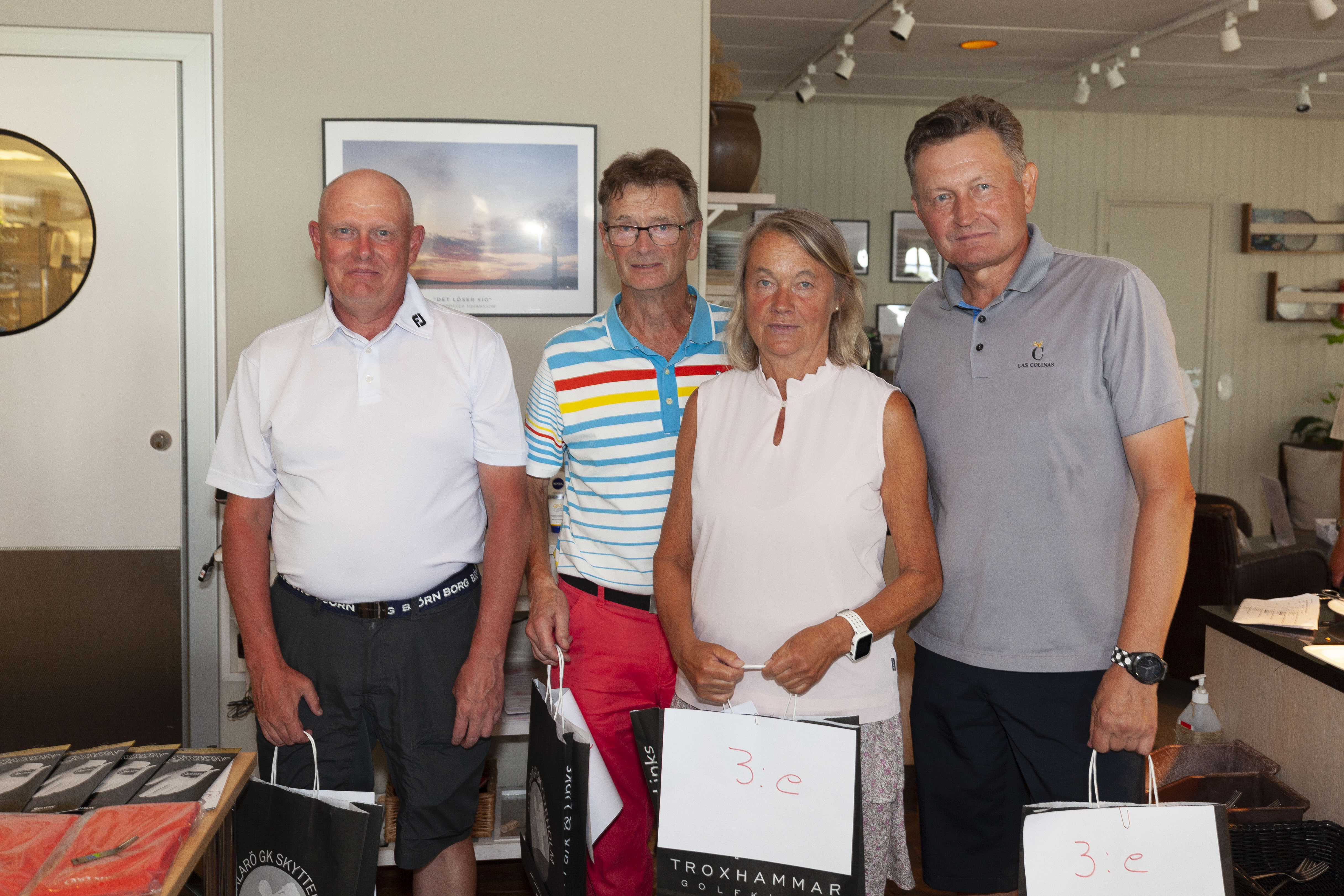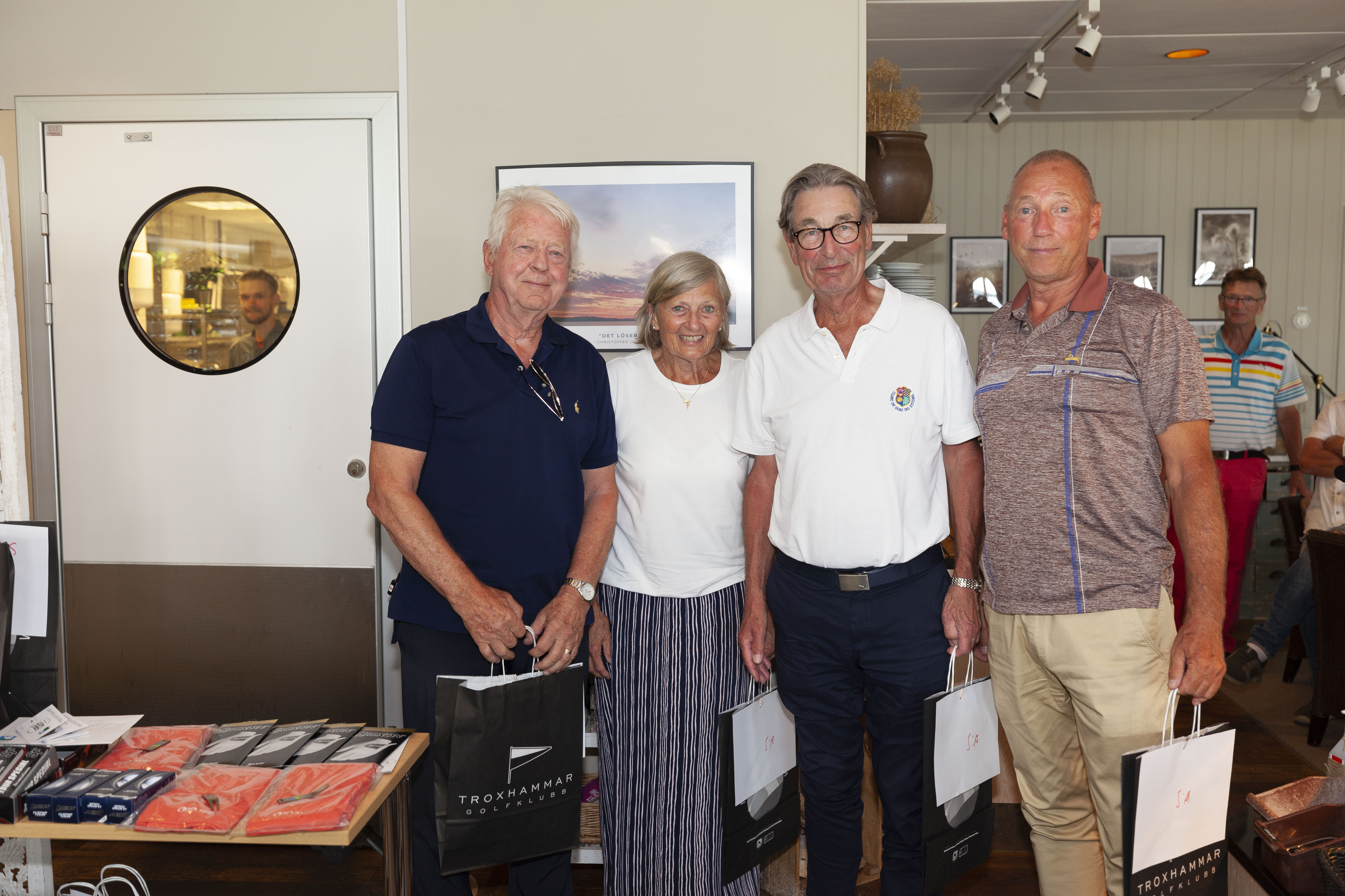 JUBILEUMSGOLFEN var scramble med 19 lag som slog ut med kanonstart kl 08.45. Banan var i toppform vilket naturligtvis gav bra resultat med följande tre lag i topp.