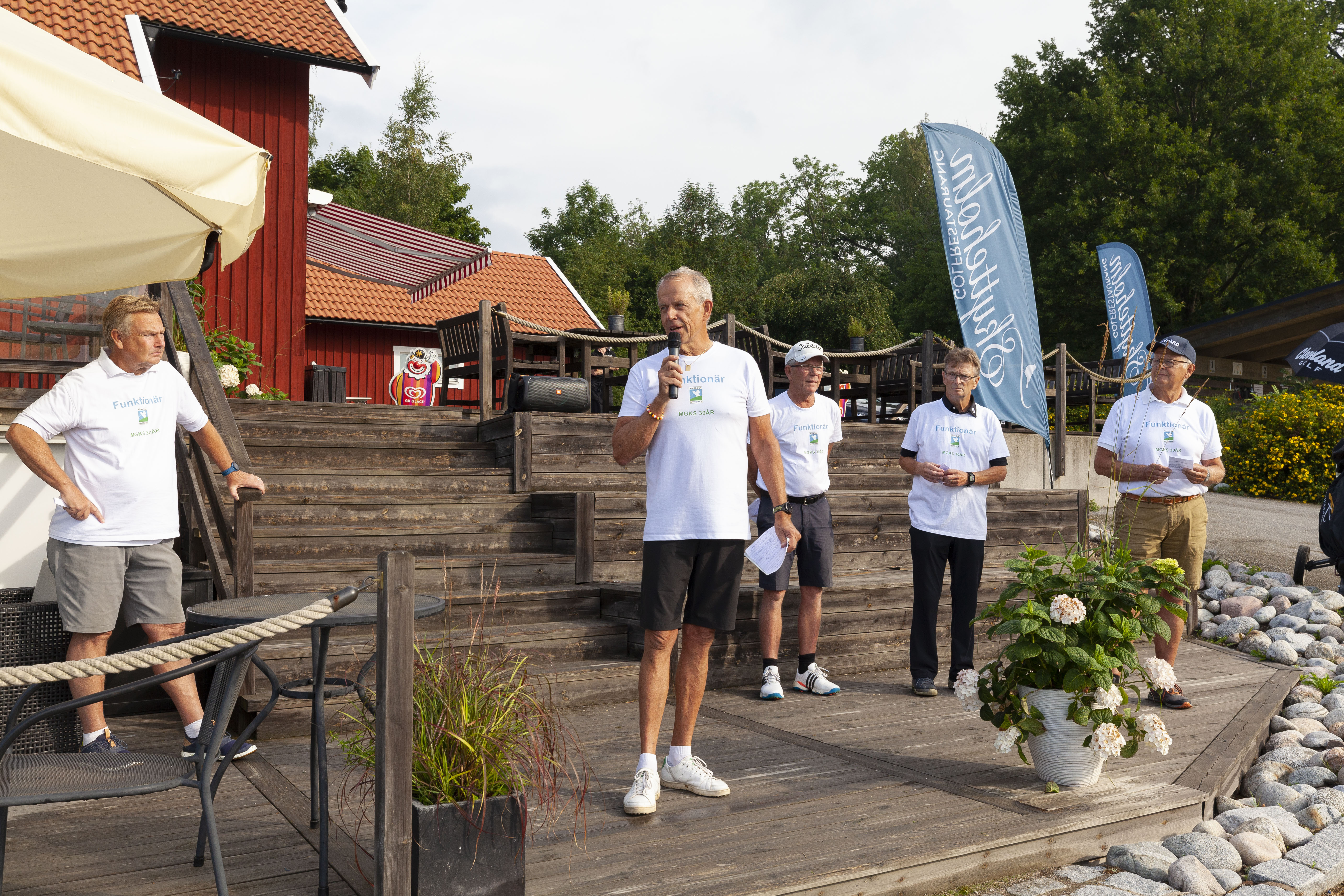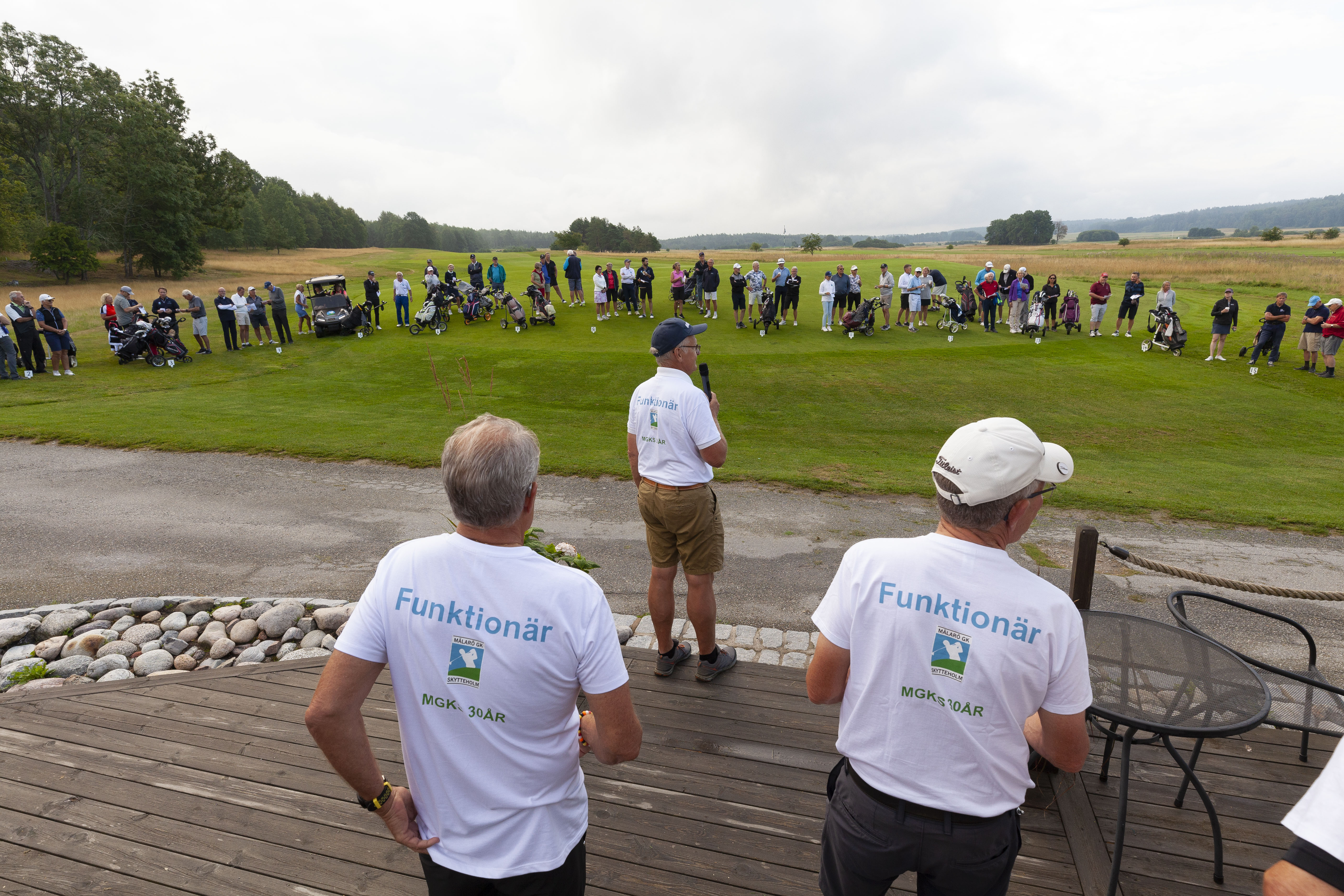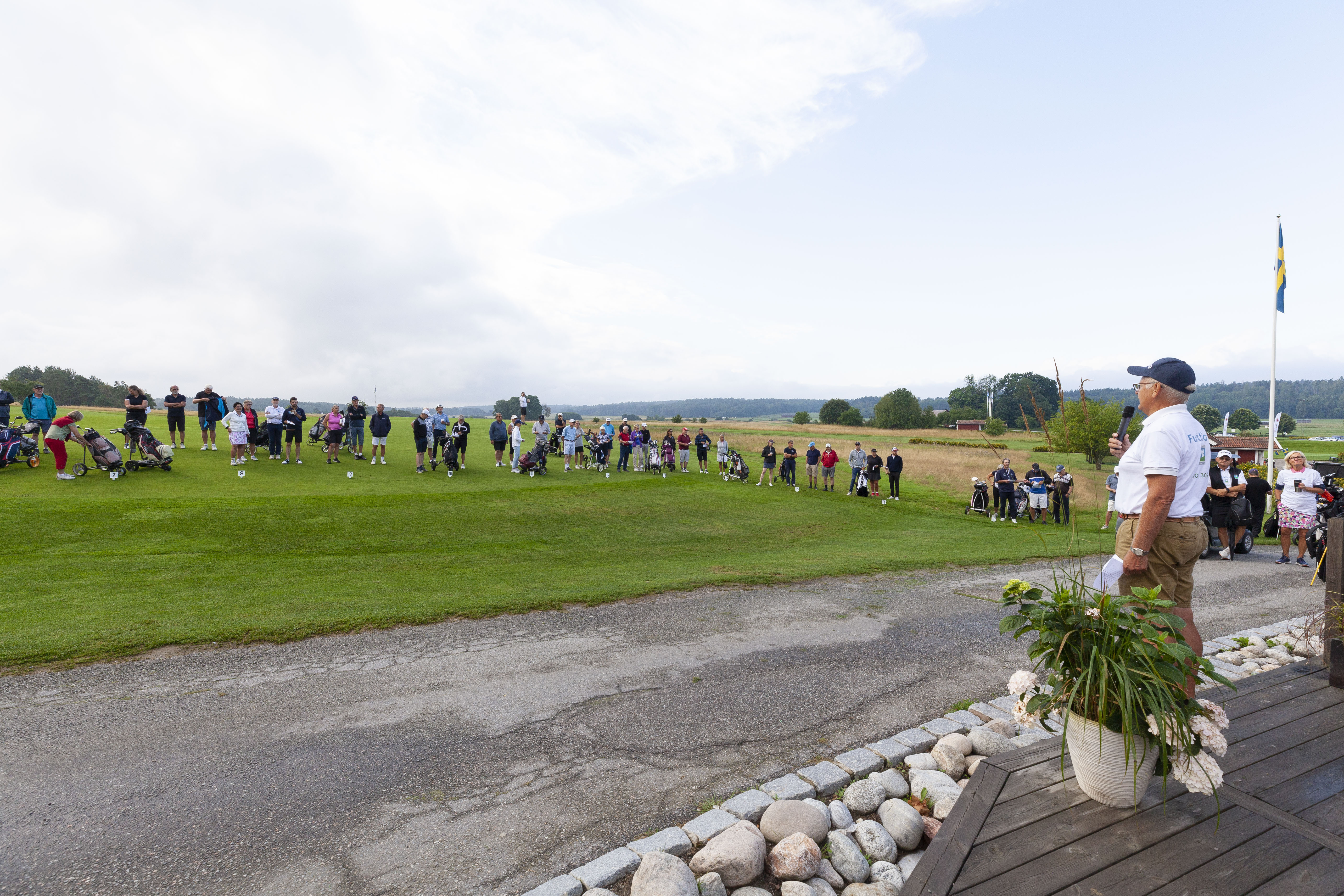 JUBILEUMSDAGEN den 23 juli 2024 bjöd på lika härligt väder som invigningsdagen 30 år tidigare. Trots en prognos som nämnt risk för mycket regn kunde 92 golfsugna samlas utanför klubbhuset i strålande sol och svaga vindar. Bland gästerna var bland annat vår förste klubbchef Göran Claesson som spelar golf än i dag 93 år ung.
