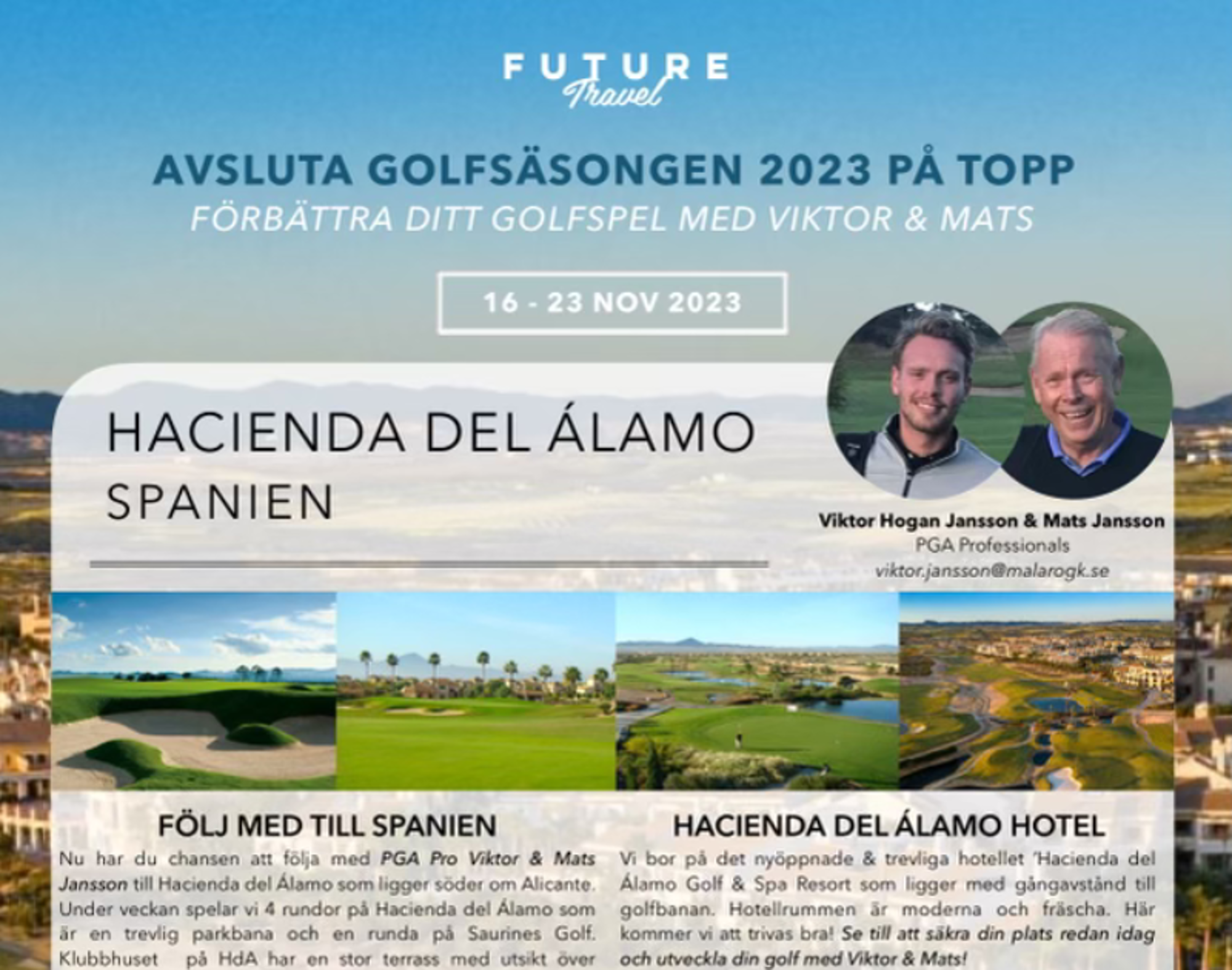 Än är det lång tid kvar av golfsäsongen men redan nu kan du boka in den perfekta avslutningen - golfresa till Spanien tillsammans med vår tränare Viktor!