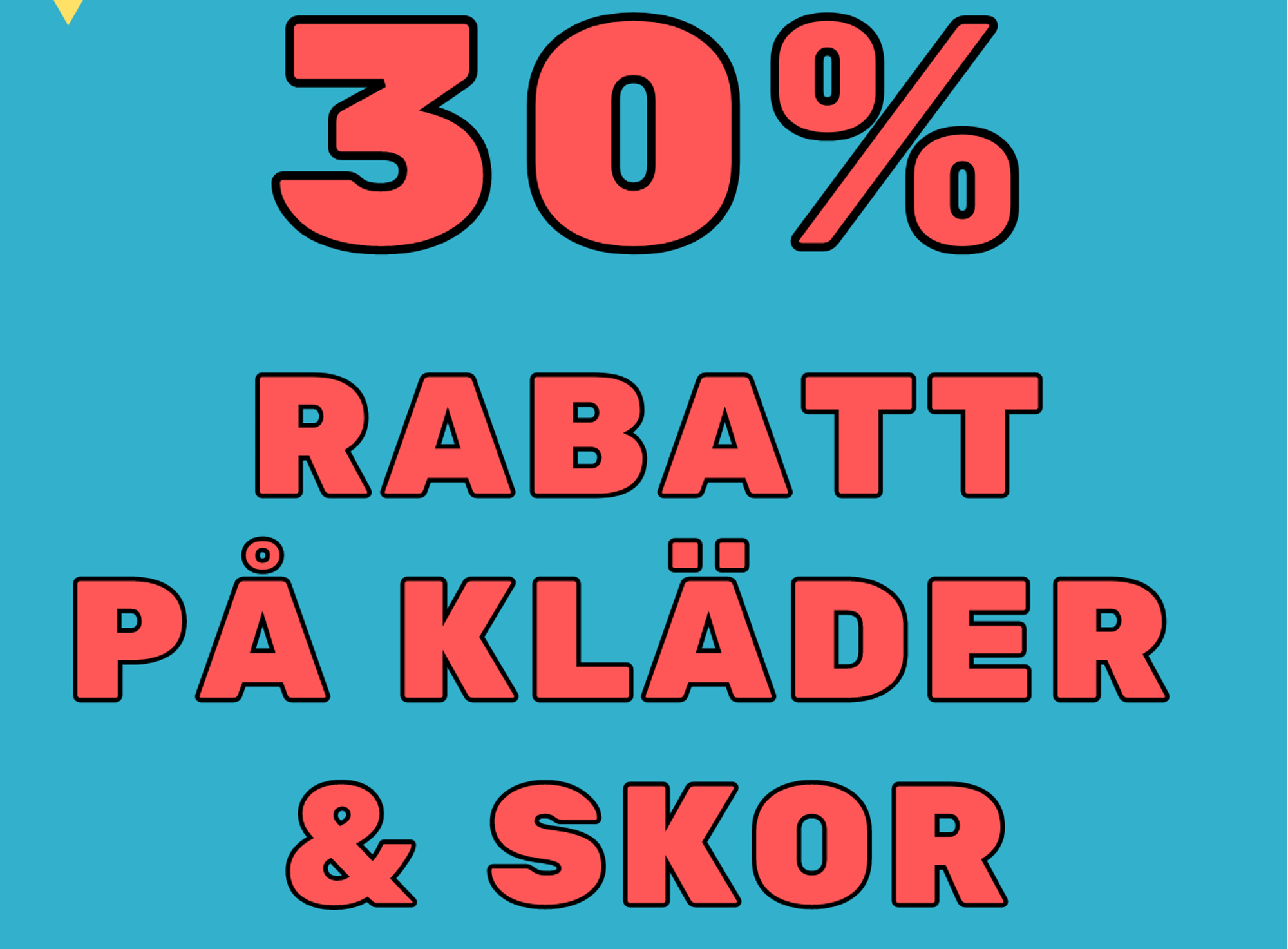 Vi erbjuder nu 30% rabatt på alla kläder och skor i shopen.